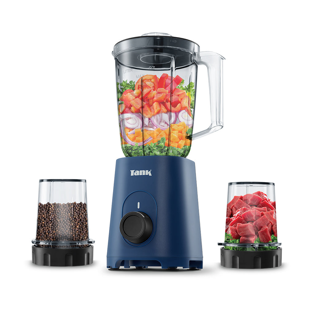 خلاط تانك سوبر، وعاء خلط بلاستيك سعه 1.5 لتر، و مطحنة من البلاستيك خال من BPA سعة 250 مل، مع مفرمة لحم من البلاستيك خال من BPA سعة 250 مل، 600 وات،نيفى، YB-010، ضمان عامين