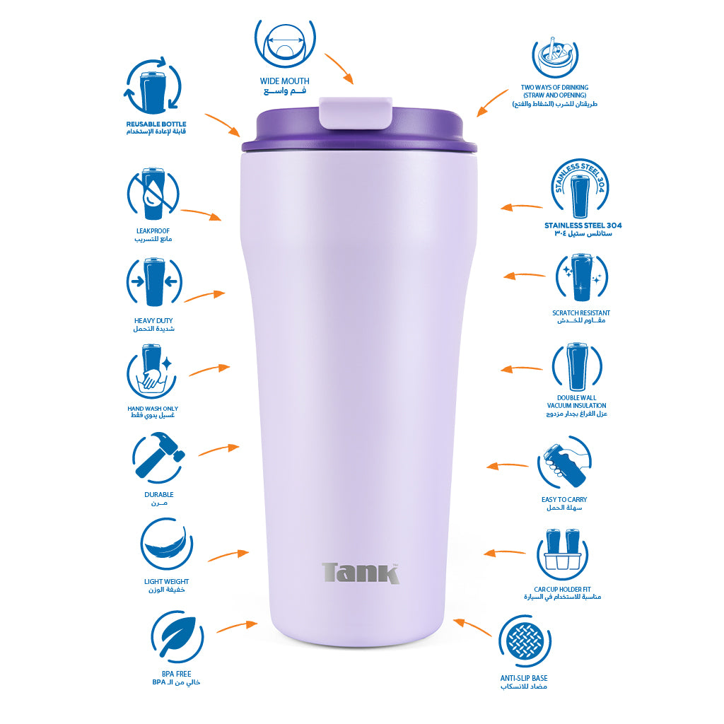 تانك إيڤري داي مج حرارى، ٤٨٠ مل، ستانلس ستيل، خالية من مادة BPA، معزولة حراريًا، مانع للتسريب - لافاندر
