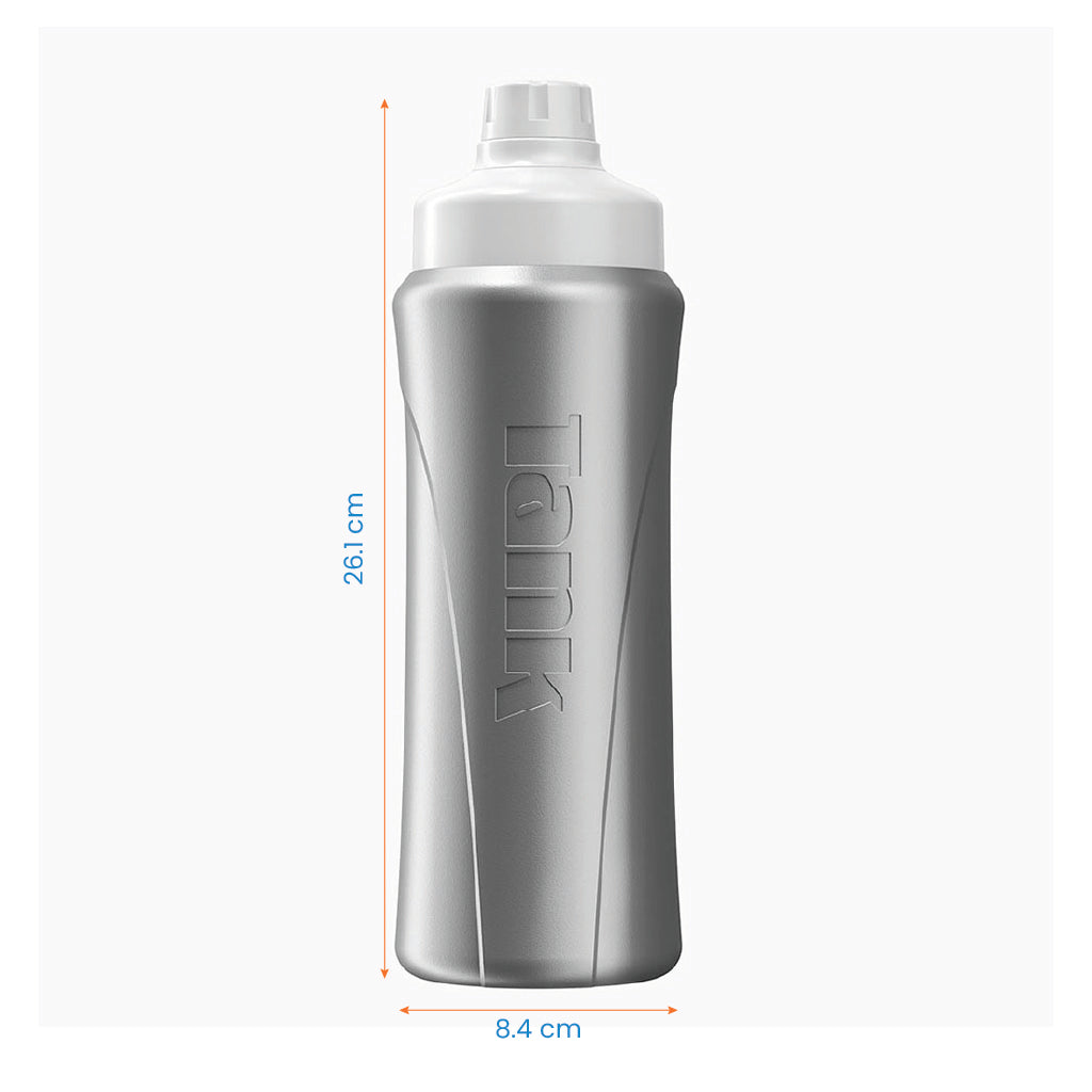 • المقاسات: عرض فوهة الزجاجة = ٨٥ مم , عرض قاعدة الزجاجة = ٨٨ مم , الارتفاع = ٢٦٠.٥ مم