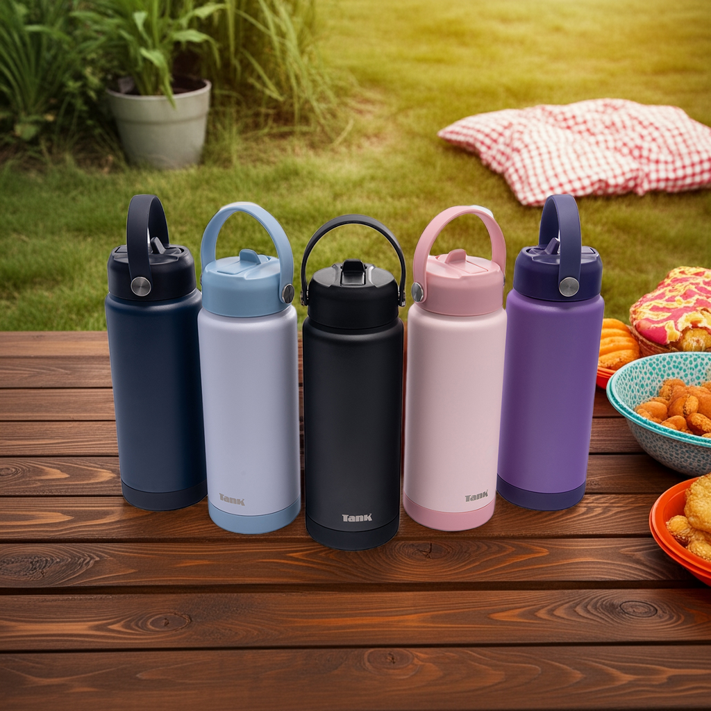 تانك موڤ، ٧٥٠ مل، زجاجة ستانلس ستيل، خالية من مادة BPA، معزولة حراريًا، مانع للتسريب - أسود