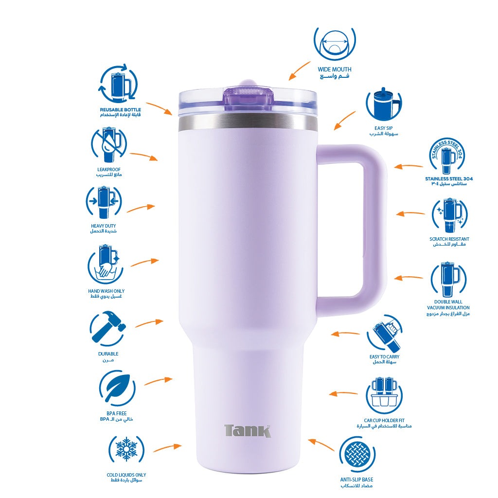• تصميم مضاد للتسريب لمنع الانسكاب وحماية مقتنياتك من البلل