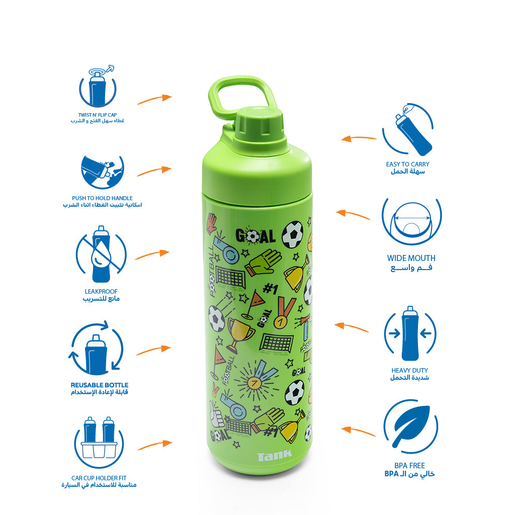 Tank Super Cool Mini - Printed Bottle, 650ml, Football, BPA free, insulated, Leakproof