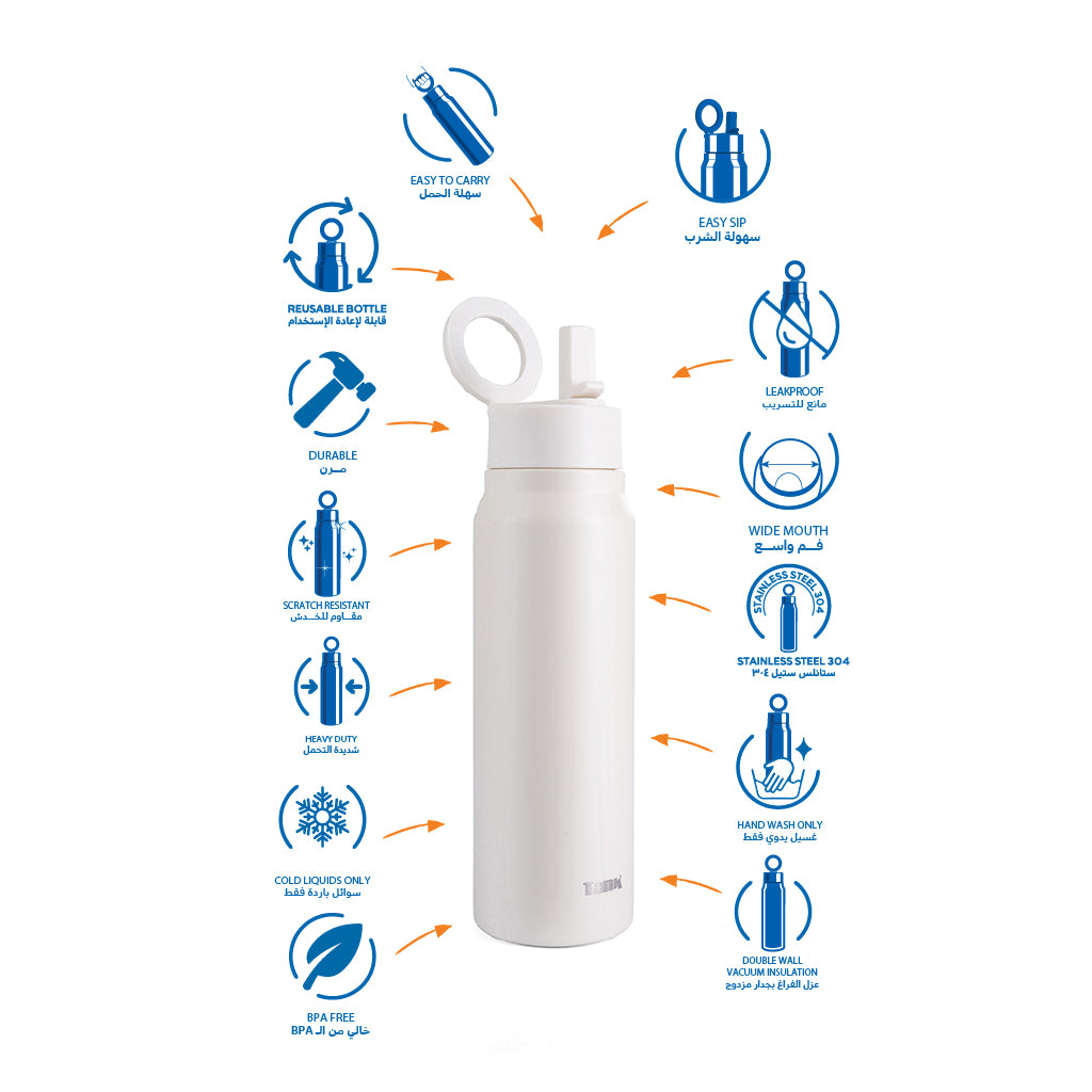 Tank Magnet, 1000ml, Stainless Steel Bottle, BPA free, insulated, Leakproof - Cream