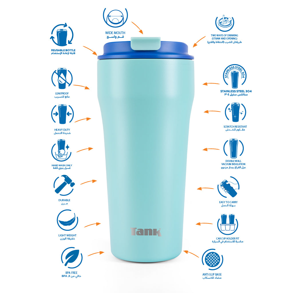 Tank Everyday Mug, 480ml, Stainless Steel, BPA free, insulated, Leakproof - Mint