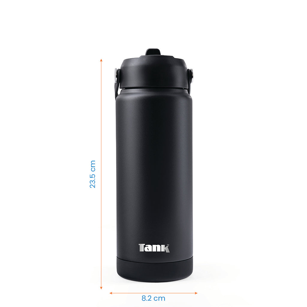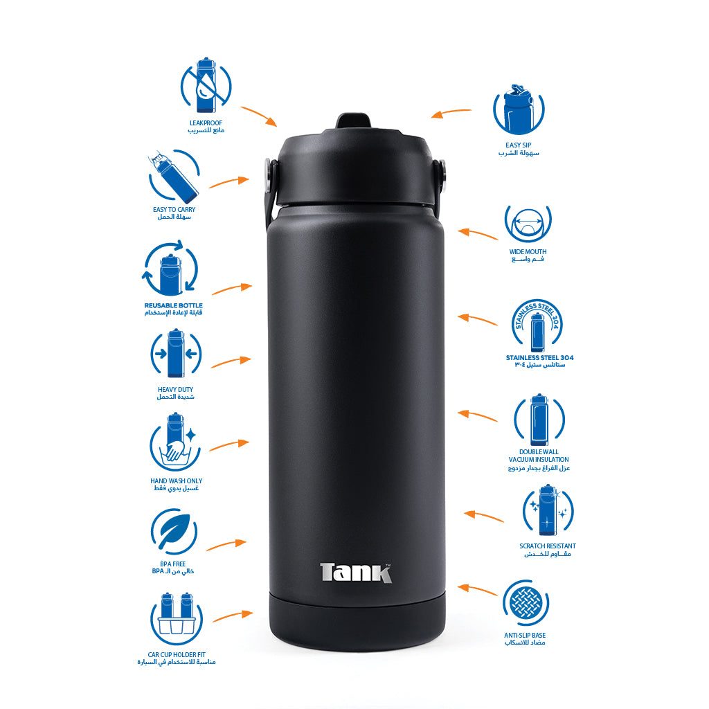 تانك موڤ، ٧٥٠ مل، زجاجة ستانلس ستيل، خالية من مادة BPA، معزولة حراريًا، مانع للتسريب - أسود